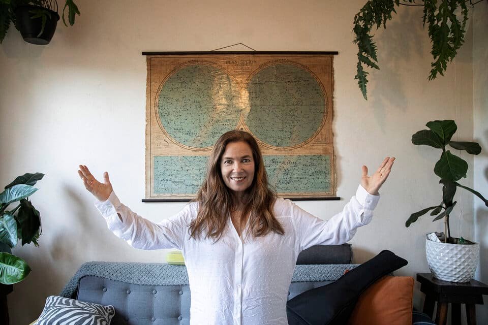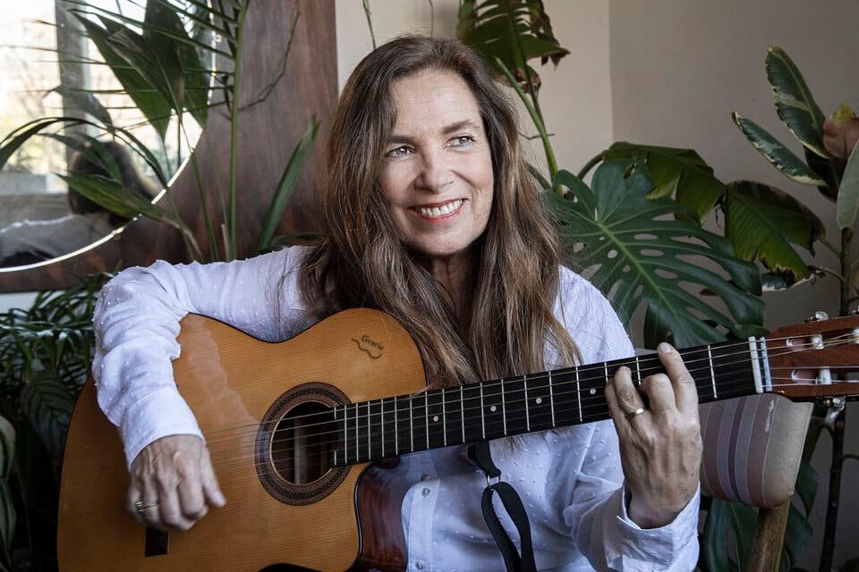 Primero toca el timbre Sánchez, su mánager y – nos vamos a enterar con el correr de la entrevista – su alguna vez baterista pero, sobre todo, su amiga desde hace más de cuarenta años. Luego llega ella, puntual, con su guitarra, «la traje por si sirve para las fotos», dice, y subimos. Pregunta quién vive en la casa, una esquina que es un poco Villa Crespo, un poco Caballito y un poco Paternal. Es la casa de Florencia, una amiga que abrió las puertas para esta charla pero que también las abre también para los cumpleaños, las fiestas, para ver partidos importantes y para las que alguna vez nos quedamos sin casa. Un refugio durante la pandemia, desde donde mirábamos la calle vacía y cada una hacía lo que podía con su vida. Eso es lo que le respondemos, lo que significa esta casa a la que le entra el sol por todas partes.